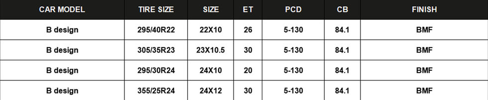 TIRE SIZE: 295/40R22, 305/35R23, 295/30R24, 355/25R24